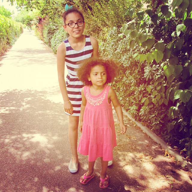 Dimanche matin, levée de bonne heure, j’ai emmené Grande L. et Petite L. profiter d’un petit-déjeuner à l’extérieur. J’apprécie de retrouver le beau temps, de sortir de bonne heure lorsqu’il fait encore un peu frais de la nuit mais que le soleil commence à chauffer. C’est tellement agréable !