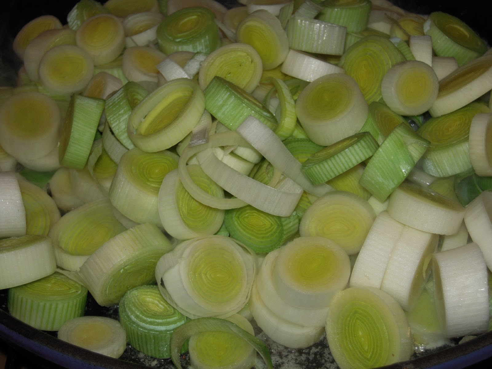 J’ai pris 6 blancs de poireaux (ils étaient pas bien gros); je les ai coupés en rondelles et les fait revenir dans du beurre, je les ai laissés à peu près 30 min à feu doux.