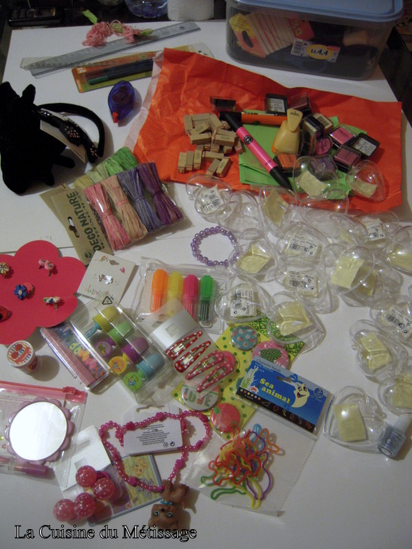 C’est pas tant l’idée qui a été dure à trouver, c’est ce que j’allais y mettre dedans, à part les bonbons et chocolat, je voulais lui mettre des petites bricoles qui lui feraient plaisir. J’ai aussi réalisé des « bon pour »…. (pour la vaisselle, le ménage), non, non, ce n’est pas vrai, je lui ai fait des « bons pour » une place de cinéma, un tour de manège, 1h sur l’ordinateur, etc.