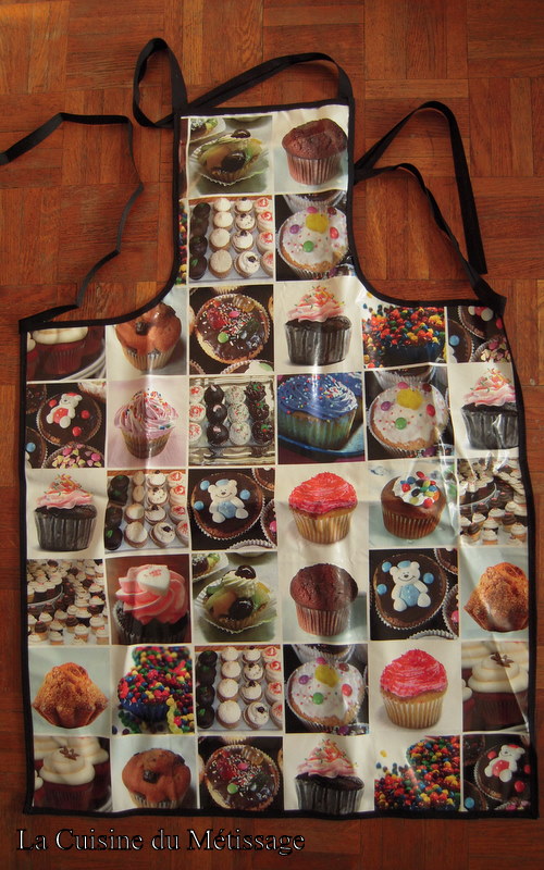 – Un super tablier « cupcakes », qui, je dois dire fait son effet auprès de ma dernière car à chaque fois que je le mets, elle me court après pour essayer d’attraper les gâteaux.