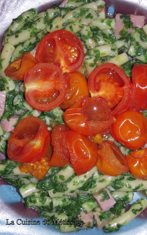 Macaronis Express aux Epinards Jambon et Tomates Cerises