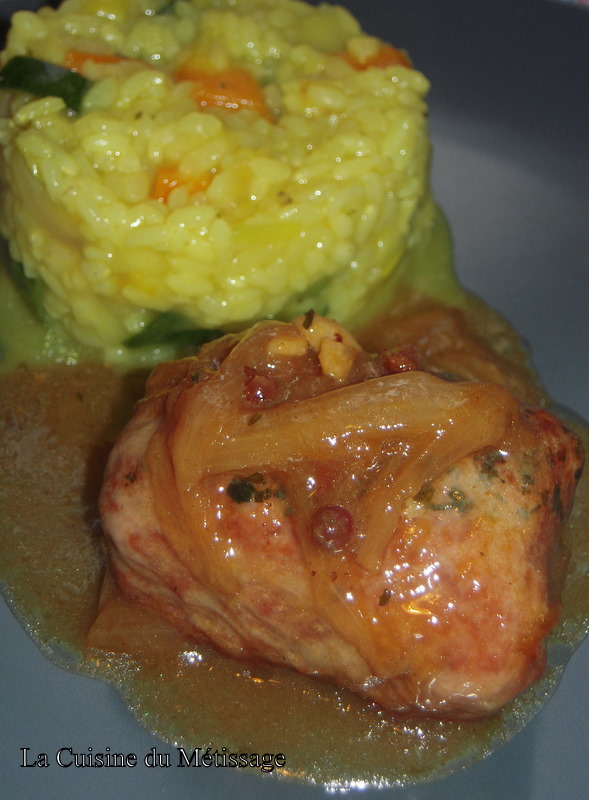 J’ai servi les crépinettes avec un risotto aux légumes et safran.