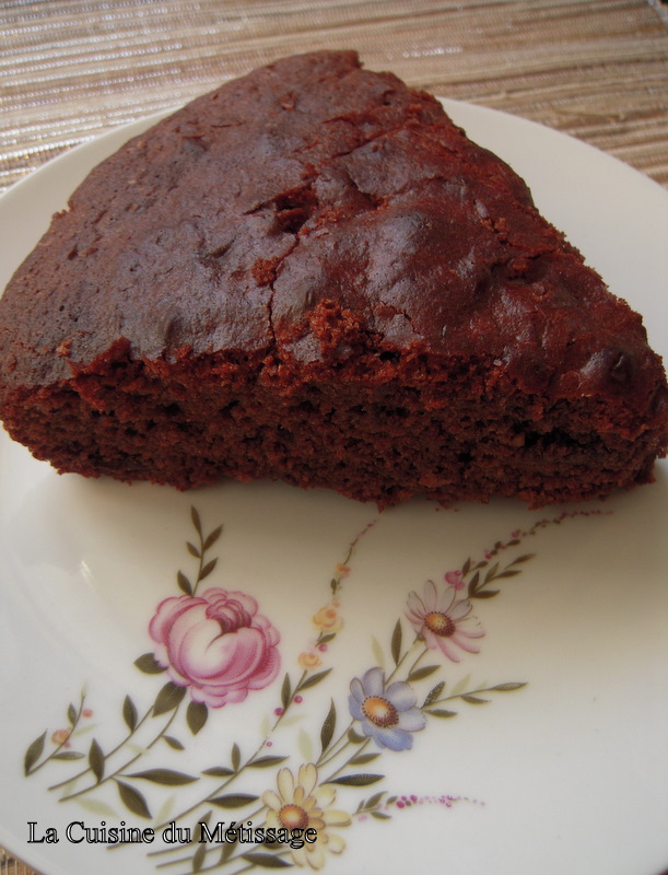 Je suis assez contente du résultat, d’ailleurs, j’ai failli ne pas avoir de photos car mon conjoint qui pourtant n’aime pas les gâteaux au chocolat est tombé dedans.
