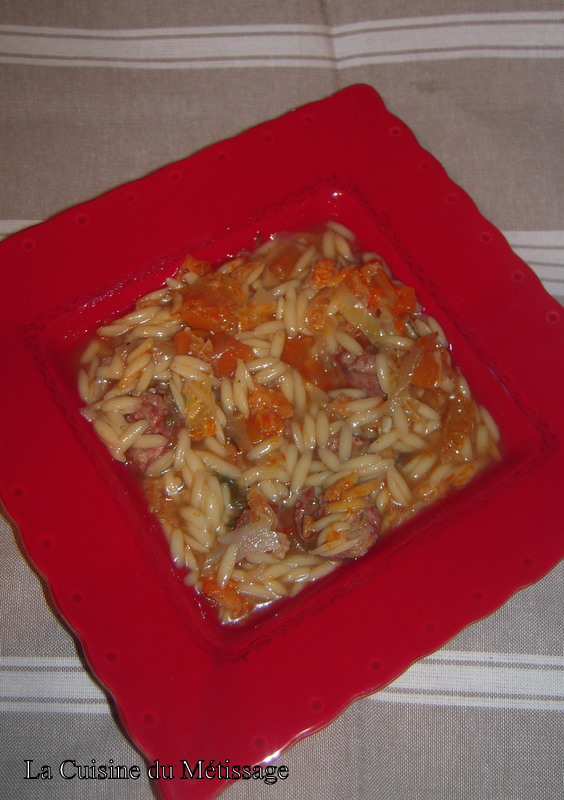 On a juste modifié, en remplaçant le riz qui était prévu par des pâtes risetti.