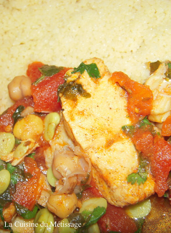 Servir la semoule, ajouter le poisson, un peu de jus de cuisson et arroser de jus de citron ou saupoudrer de cumin en poudre pour ceux qui le souhaitent.