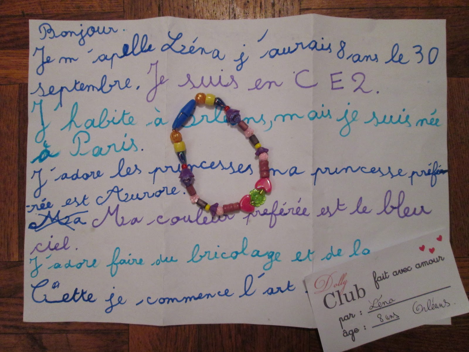 Et un bracelet + une lettre reçus avec le Dolly Club.