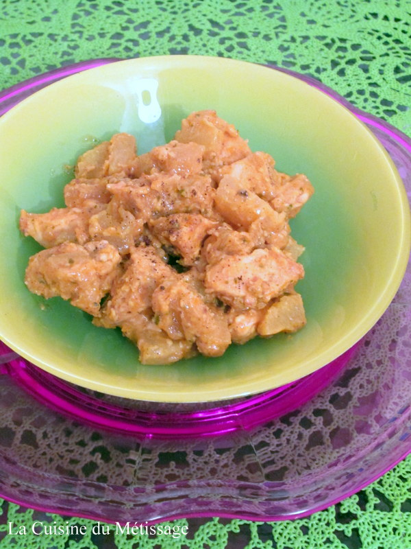 Verser la sauce Korma et laisser mijoter à feu doux environ 10 minutes.