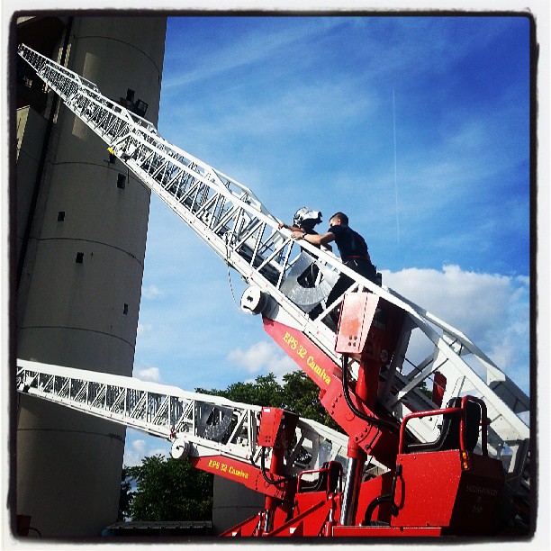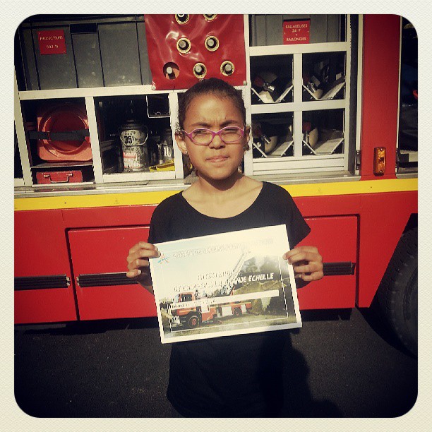 Puis finir la semaine en étant fière de sa grande qui, lors, des portes ouvertes de notre caserne de pompiers, a grimpé à la grande échelle; pas moins de 6 étages quand même.