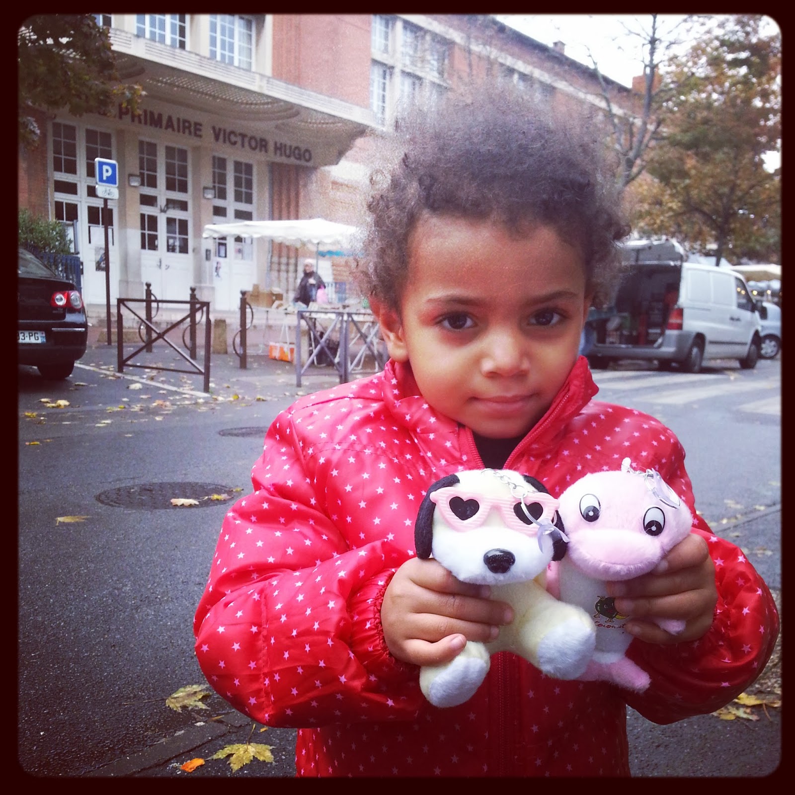 Et avant de rentrer chez nous, on a voulu passer par le marché et devant un stand, une mamie a offert deux petites peluches à ma petite. J’avoue que, sur le coup, j’ai été totalement désemparé. Et ma fille, habituellement plutôt « sauvage » face aux inconnus, lui a fait un énorme bisou. Cette mamie, elle ne sait pas, mais son geste m’a terriblement émue. Ici, je ne raconte pas tout, je ne raconte pas certaines difficultés qu’on rencontre depuis 6 mois, c’est comme ça, je me dis que ça ira mieux demain et que souvent, c’est bien pire ailleurs.