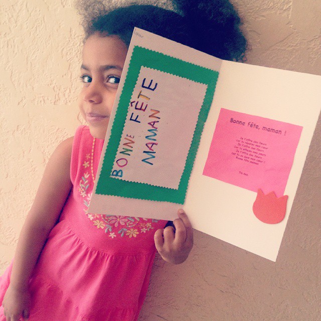 Dimanche matin tout doux pour la fête des mamans avec un joli bouquet ! Avec les filles, on est allées faire au tour au marché, pendant que l’homme a préparé le repas. On est allées chercher quelques surprises pour envoyer à maman et ma belle-maman… Mais chut ! J’en ai profité pour me « gâter » en achetant un gâteau pour le dessert !