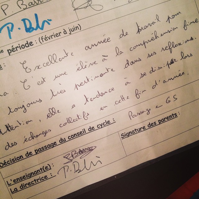 Lundi soir, j’avais rendez-vous avec Grande L. dans son futur collège. Dans l’ensemble, une très bonne impression de la proviseur et de l’établissement. Grande L. a vraiment hâte d’être à la rentrée, elle trépignant dans chaque classe visitée ! Et son père et moi sommes bien soulagés.